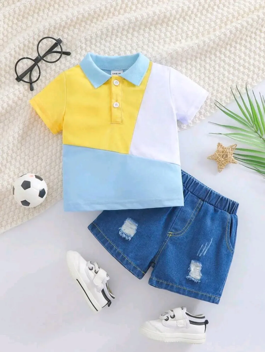 Camisa Polo tricolor con Botones Blancos / 9-12 Meses / 12-18 Meses / 18-24 Meses / 2-3T