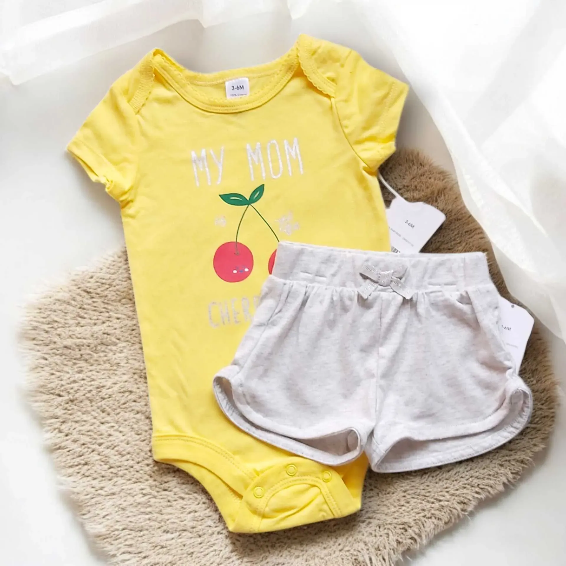 Conjunto de mameluco y shorts de la reconocida marca George, ideal para bebés. Diseño moderno y cómodo que brinda libertad de movimiento. Perfecto para el día a día o eventos especiales.