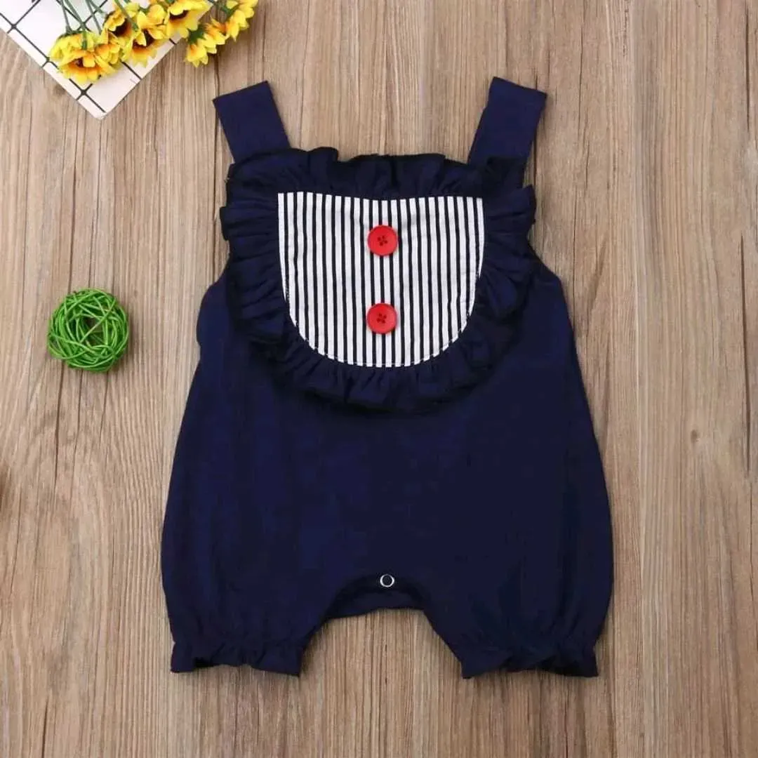 Romper azul de tirantes / 3-6 Meses / 6-9 Meses / 9-12 Meses / 12-18 Meses