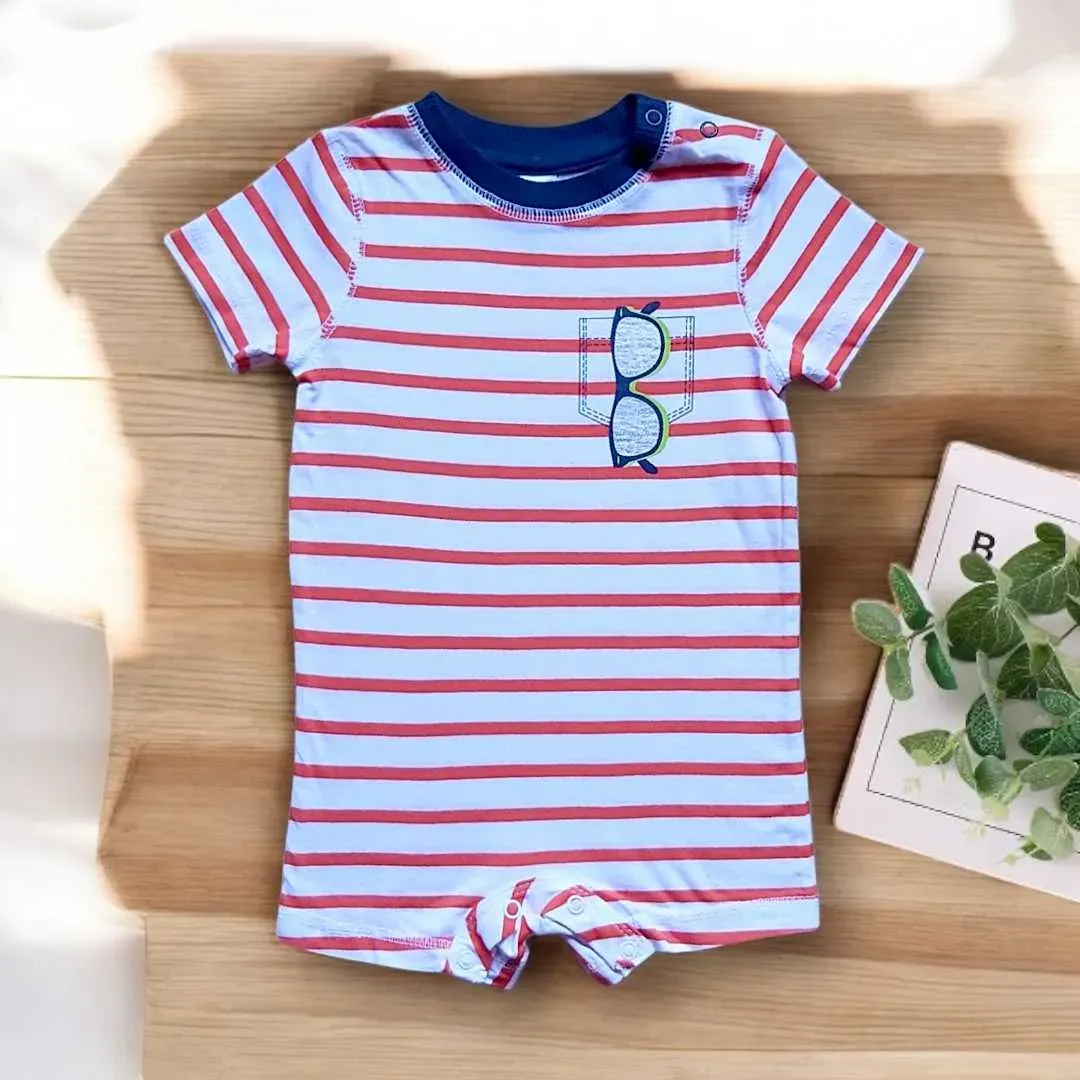 Este romper rayado de manga corta es la prenda perfecta para tu bebé. Con un diseño moderno y cómodo, tu pequeño lucirá adorable en cualquier ocasión. Hecho con materiales de alta calidad para garantizar durabilidad y comodidad. ¡Haz que tu bebé destaque con este romper único!