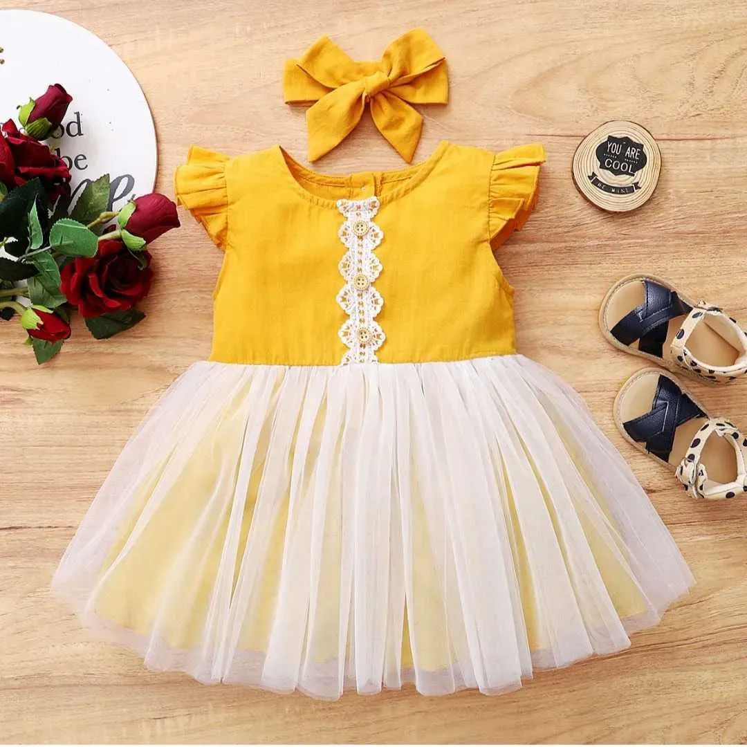 Vestido amarillo con forro blanco / 12-18 Meses