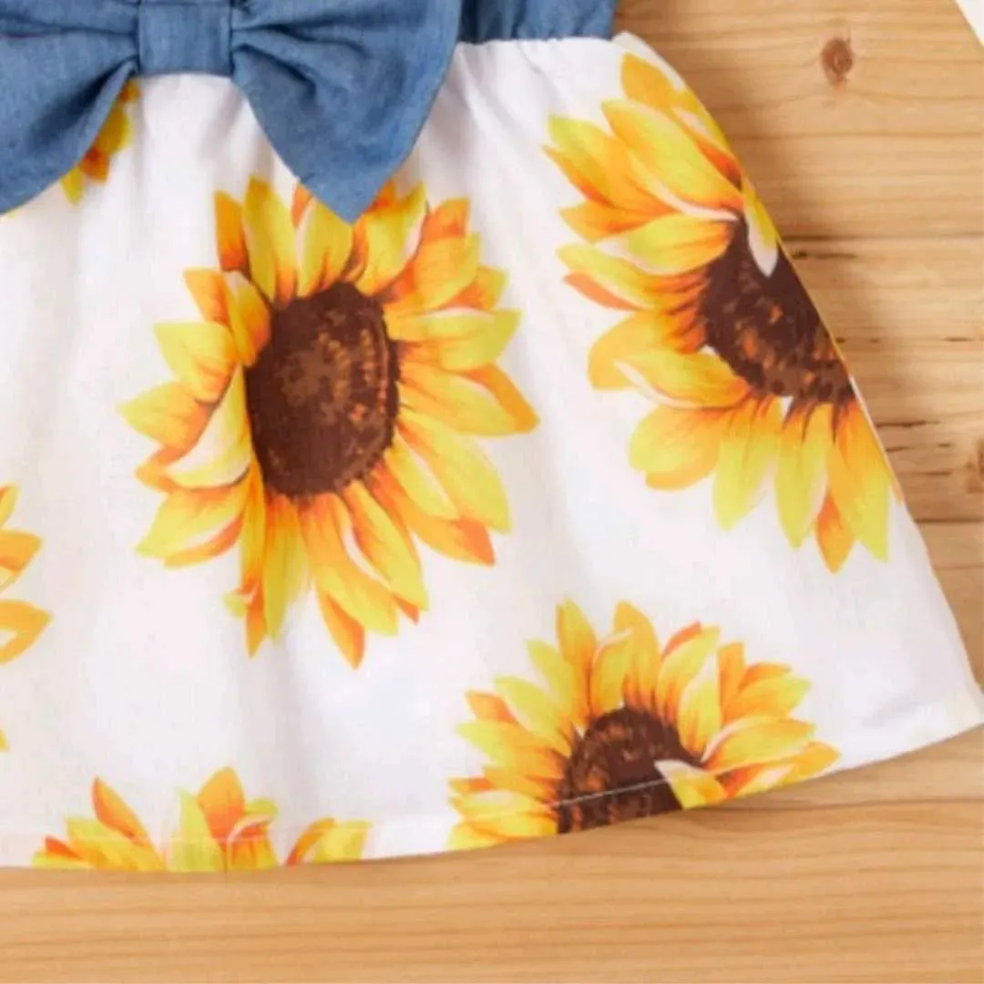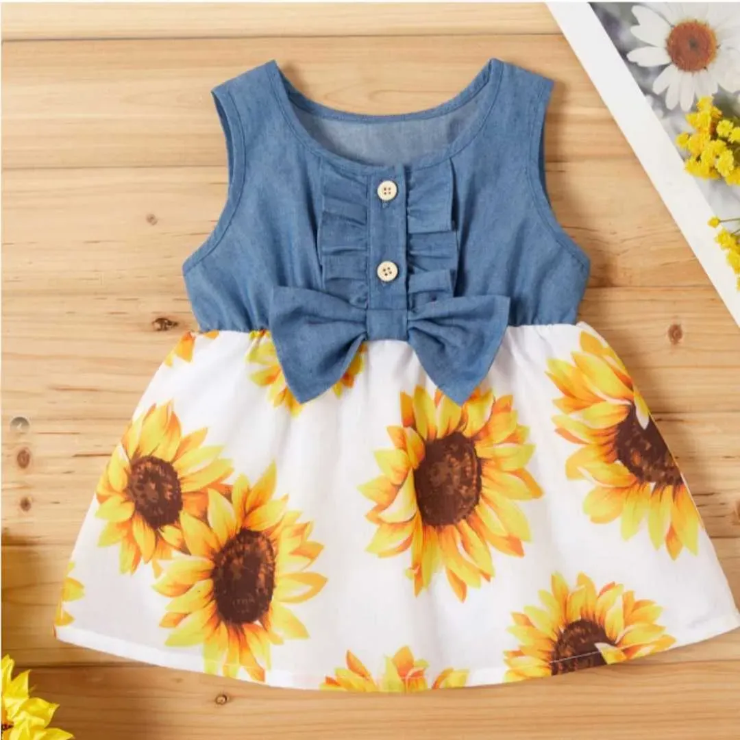 Vestido con diseño de girasoles perfecto para niñas de 18-24 meses. Este hermoso vestido es ideal para ocasiones especiales o para el día a día. Confeccionado con materiales de alta calidad, garantiza comodidad y estilo para tu pequeña. ¡Hazla lucir radiante con este encantador vestido!