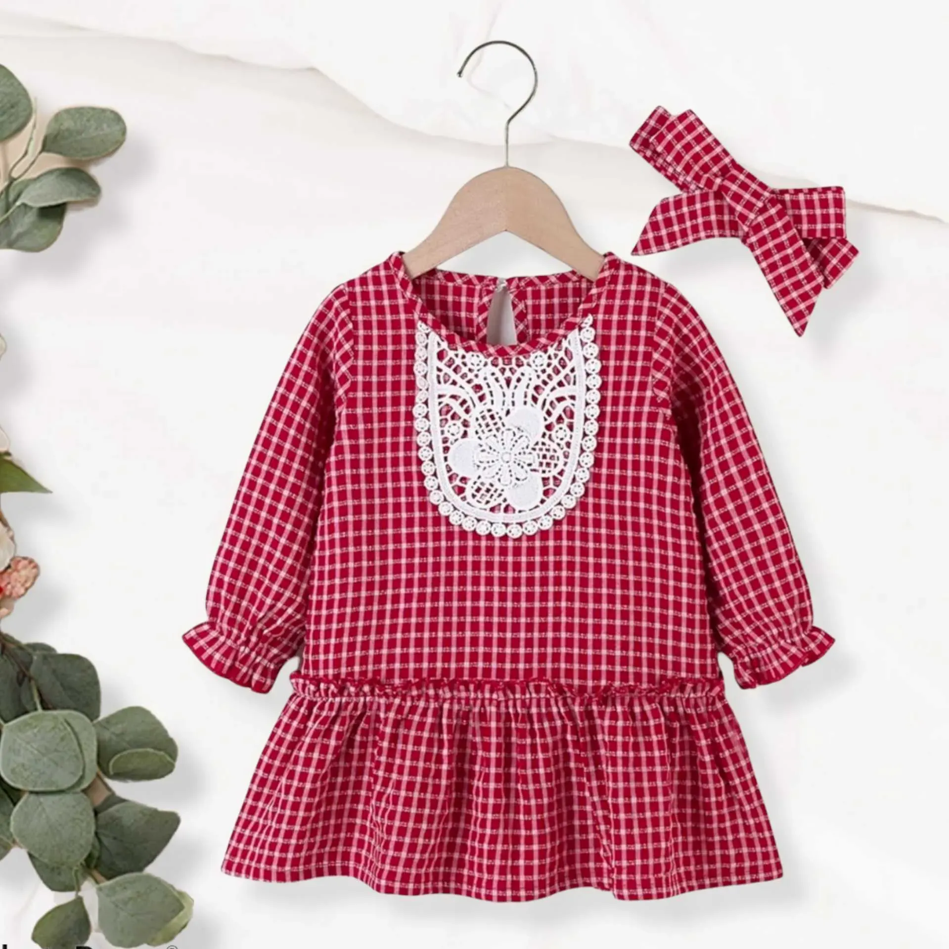 Vestido rojo a cuadros y chonga / 0-3 Meses / 3-6 Meses / 9-12 Meses